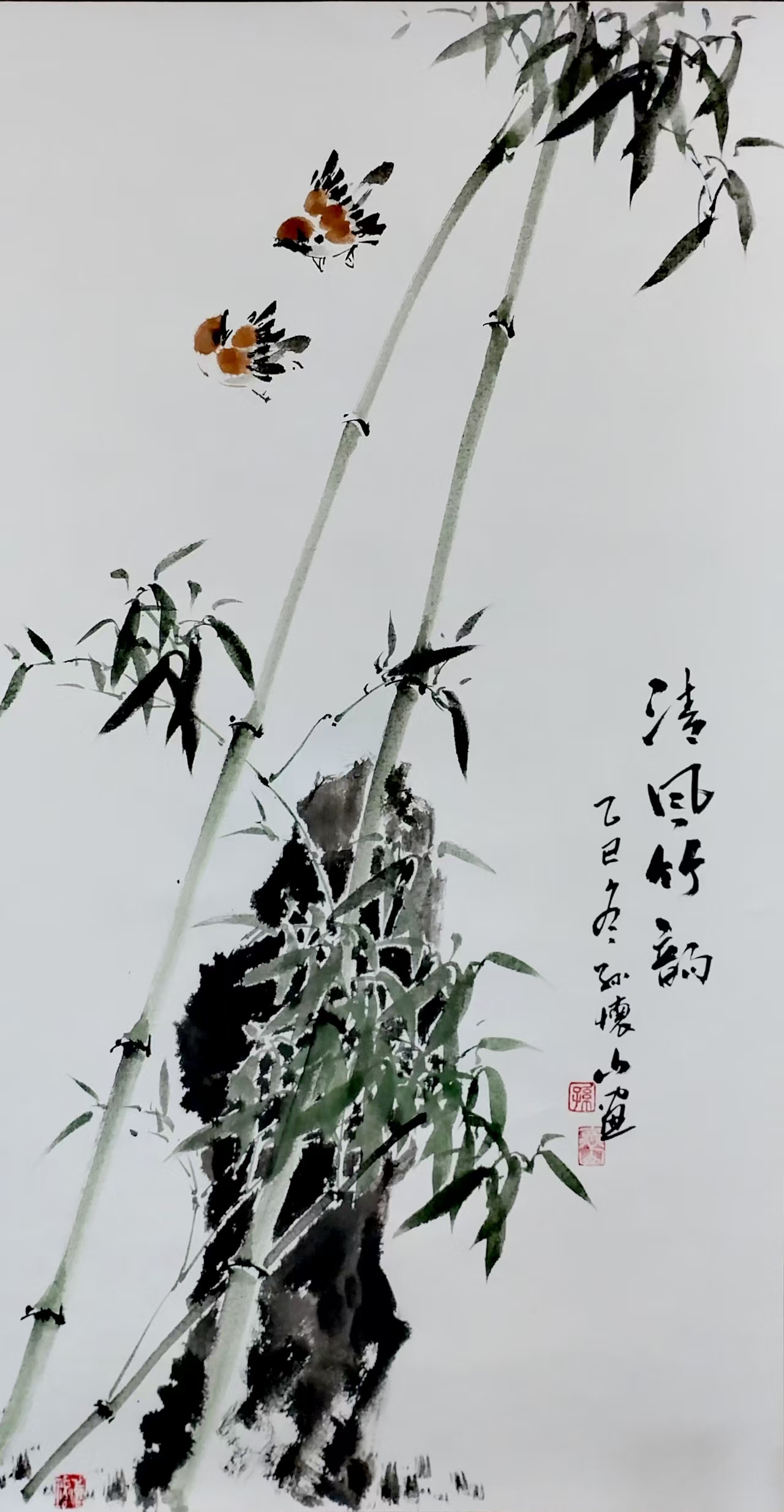 孙怀山常言:“画是心的镜子。”在代表作《清风》《秋韵》中,他以萧疏简淡的笔触勾勒秋日竹林的舒朗清气,将个人性情与自然意境融为一体。这种“情与景汇、意与象通”的创作理念,使其作品屡获业界认可:近五年间,共有五十余件作品入选省级以上展览,其中《竹香醉》《春风醉》等作品被多家权威媒体专题报道,部分画作更被收藏机构高价珍藏。