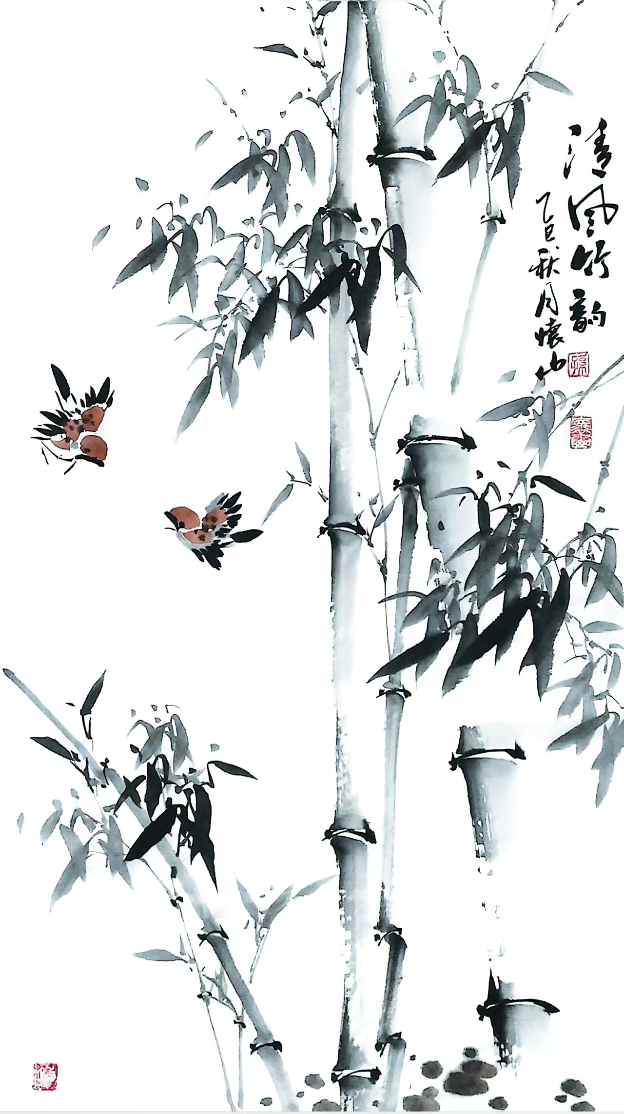 1965年生于安徽淮北的孙怀山,自幼痴迷绘画,系统研习中国画立意、章法、笔墨、赋色等理论。1989年从中国书画函授大学毕业后,他专攻花鸟画,尤以写意墨竹见长。其作品既承袭郑板桥等历代大家的法度,又融入对自然的观察与体悟,形成“或挺劲如剑、叶茂如云,或疏朗似诗、淡墨含情”的多元风格。中国美术家协会专家评价其画作“在浓淡干湿间尽显‘以意取胜’的哲思,是传统笔墨与现代审美的完美结合”。